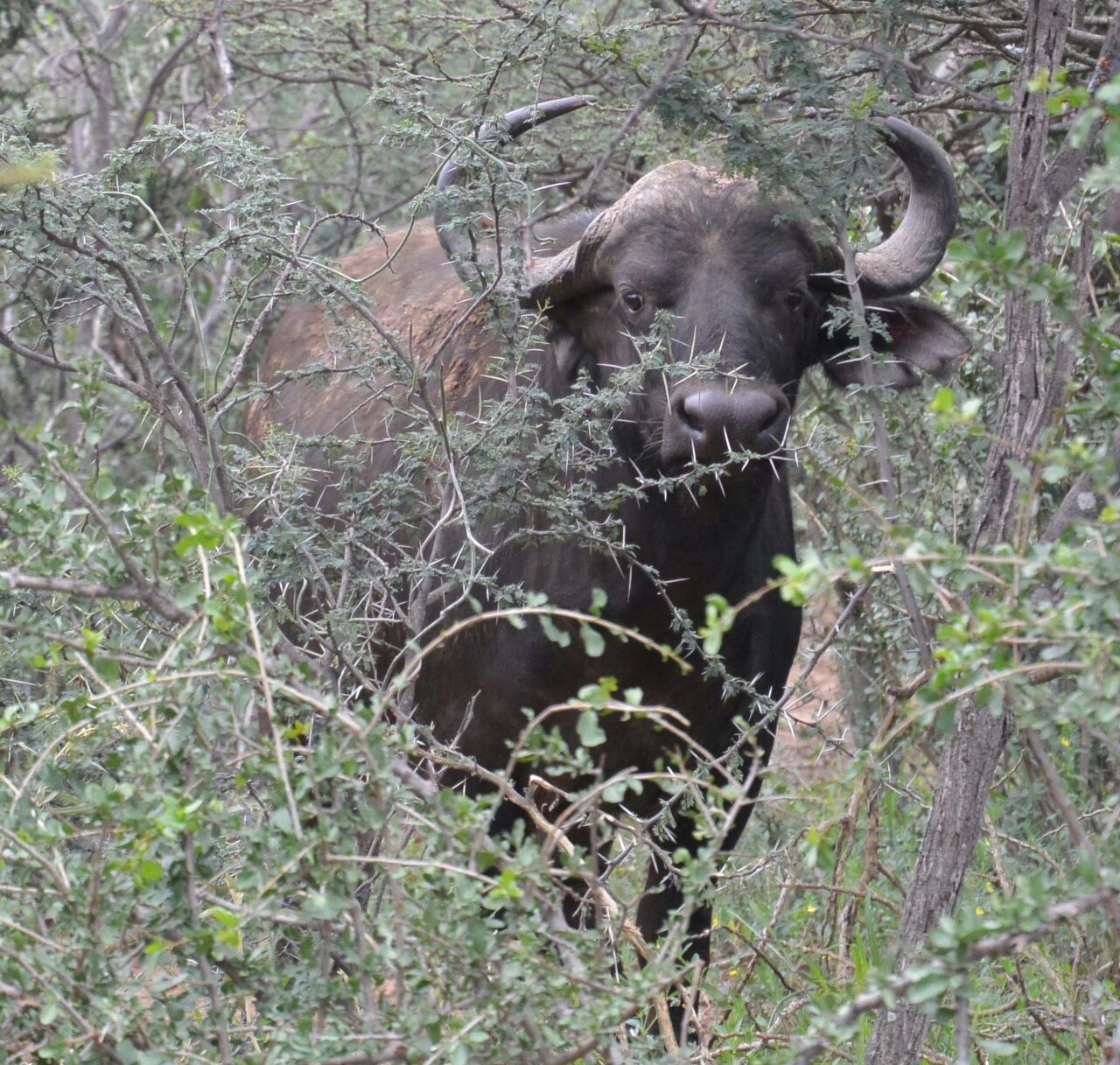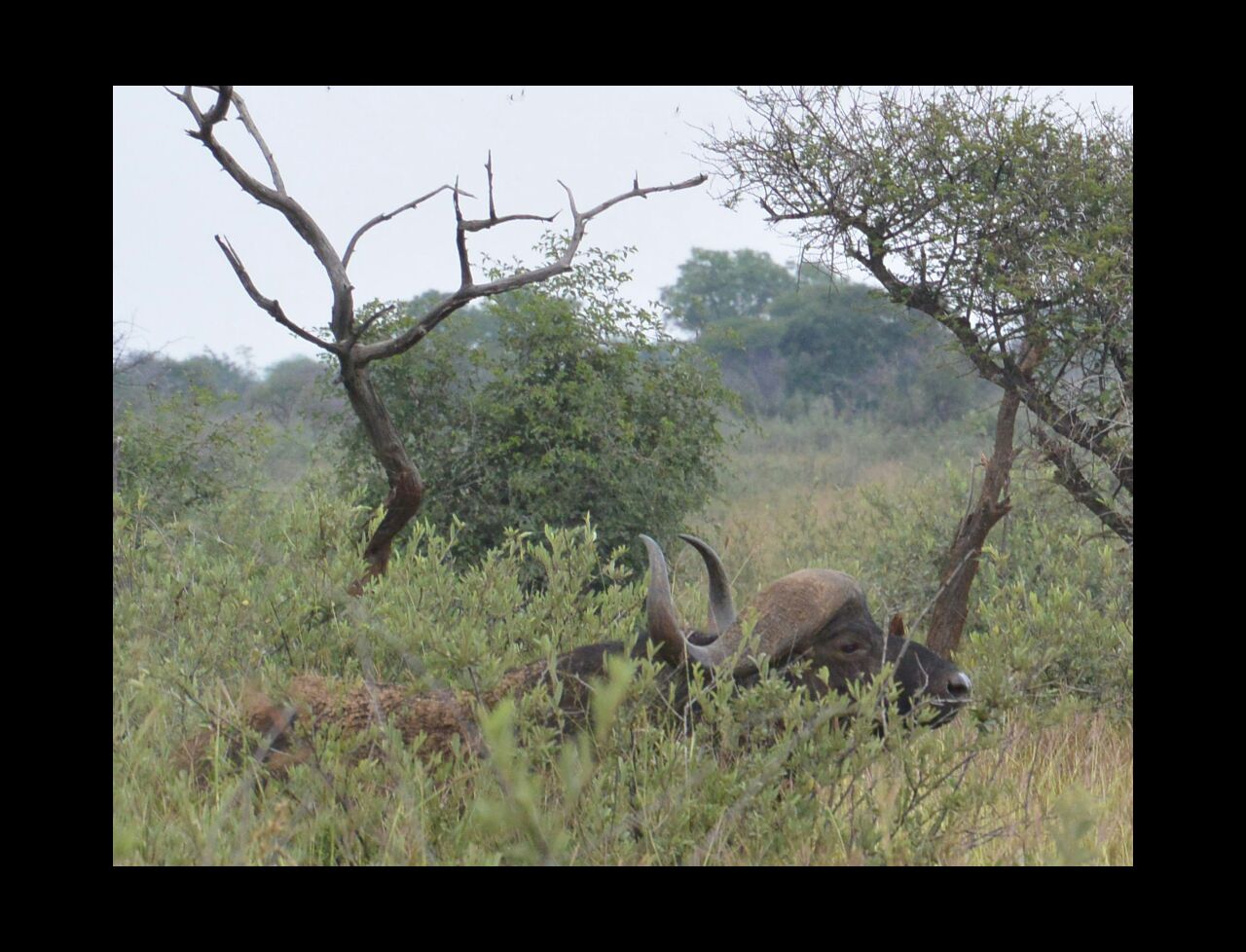 As we head back into the thicker part of the bush we spot a Rhino having a nap, there are only 12 or so Rhino in the park and they are at the mercy of poachers who kill the animals to steal the horns. These end up on the black market in Asia, where they believe it is an aphrodisiac.