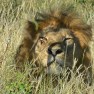 John comes to tells us they have spotted two lions down near the floodplain and Bevan will take us down there. Several other vehicles are already watching a male and female lion lolling in the grass, these two are more interested in mating every 20 minutes than in the spectators. Bevan’s knowledge of the area and expert driving skills gets us within pouncing distance – I learn this when I stand up to take a photo and the lioness responds by sitting up and staring directly at me. Bevan quickly recommends I sit down, so I obey (the photo was well worth it)! We sit and watch them for about 20 minutes, until they are going at it again – of course Don wants to come back in his next life as a lion!