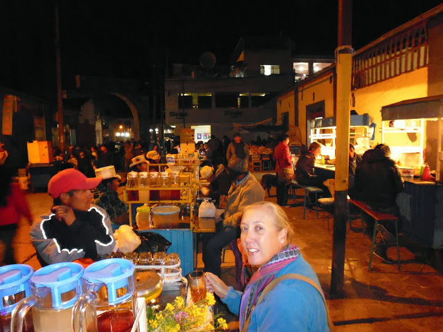 Dinner that night is at the local street market; grilled alpaca, chicken, or pork are all on offer.  The local tea is delightful; is a concoction of herbs, flowers and honey.  It has to be one of the cheapest meals we’ve eaten.