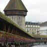 The Chapel bridge forms the centerpiece of the townscape.  The covered wooden bridge is one of the oldest in Europe, though it was damaged in a fire in 1993, it has since been fully restored.