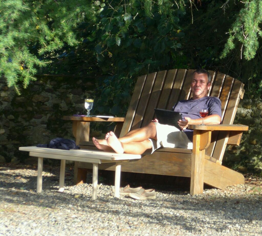 Don relaxing with new coffee table, Le Prielle